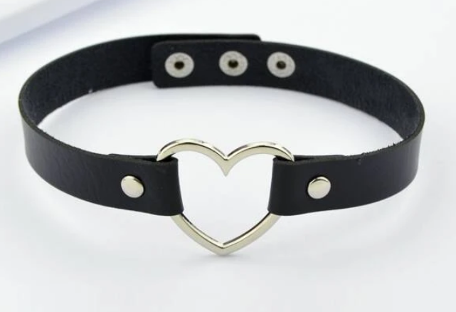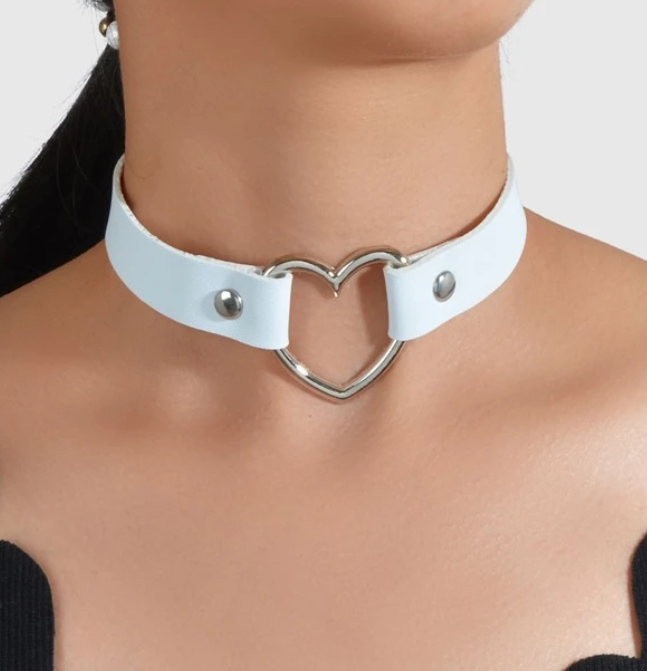 Accesorio collar corazon central metálico y tiras de eco cuero con broche ajustable