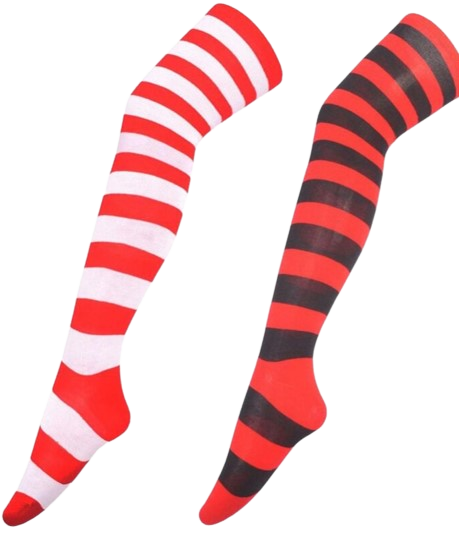 Mide de mas de 65 cm quedan arriba de la rodilla tenemos en los colores clásicos blanco/ negro, morado/negro y rojo/blanco