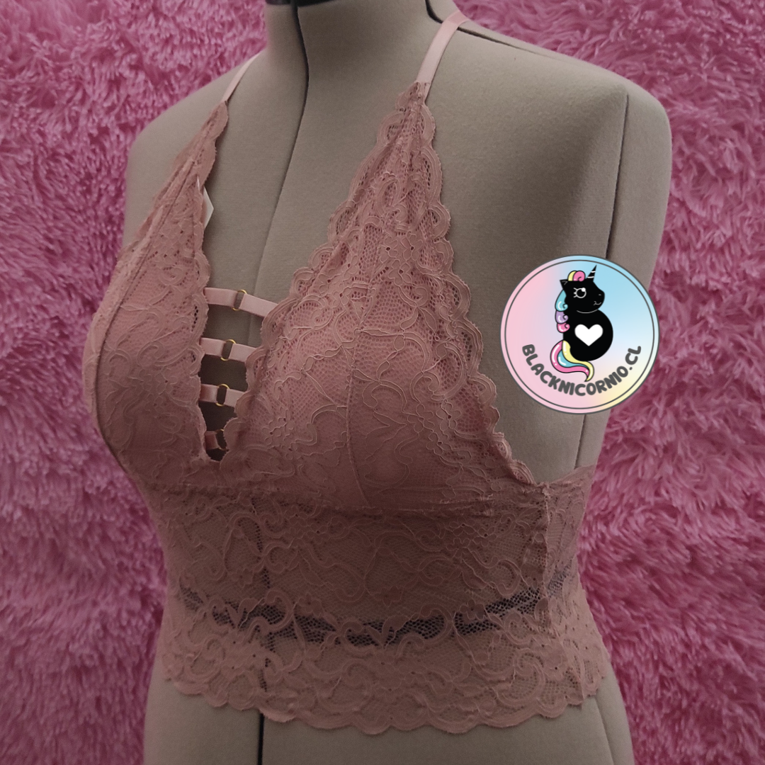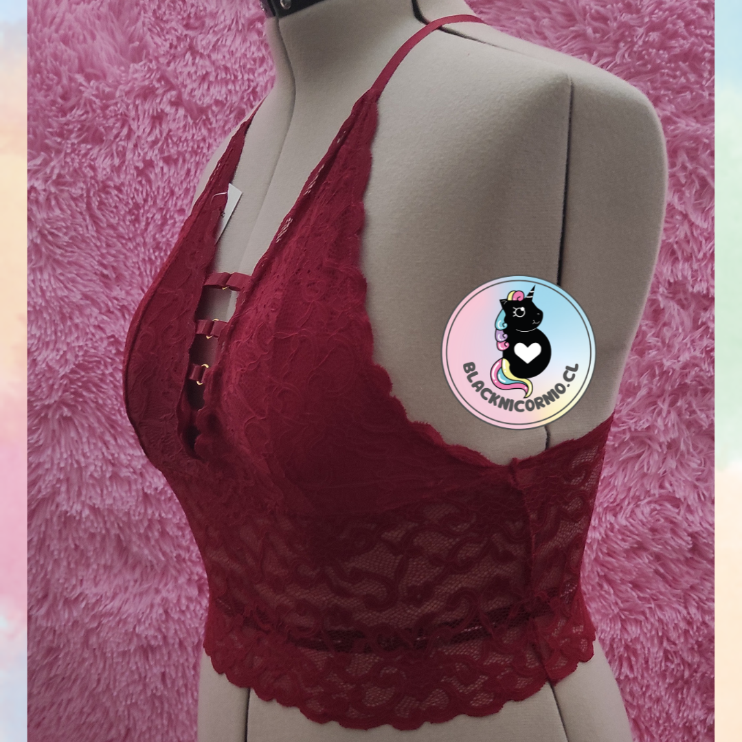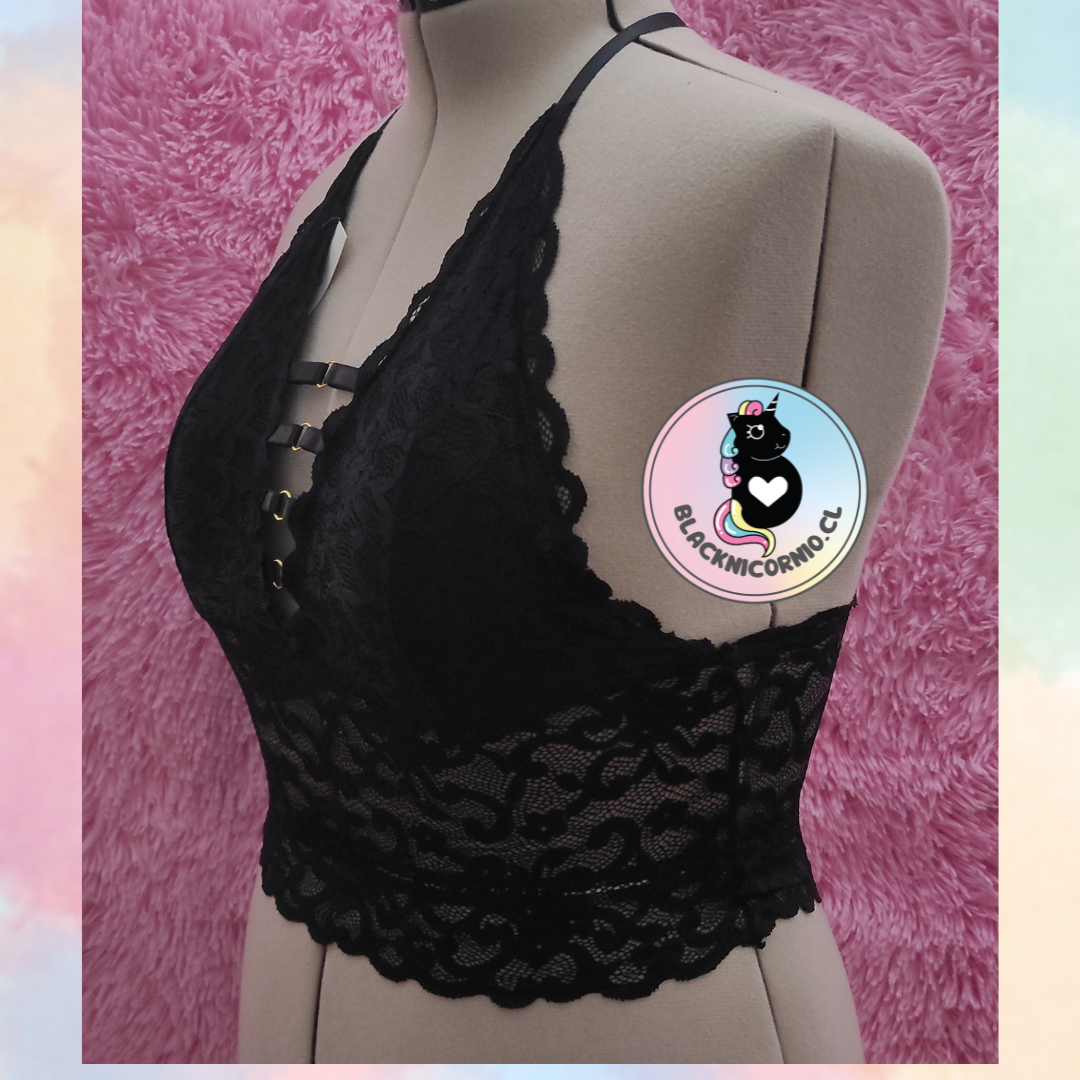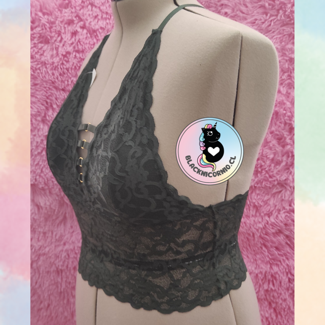 Bralette sexy con delantera de unión de tiritas y detalle circulo metálico.