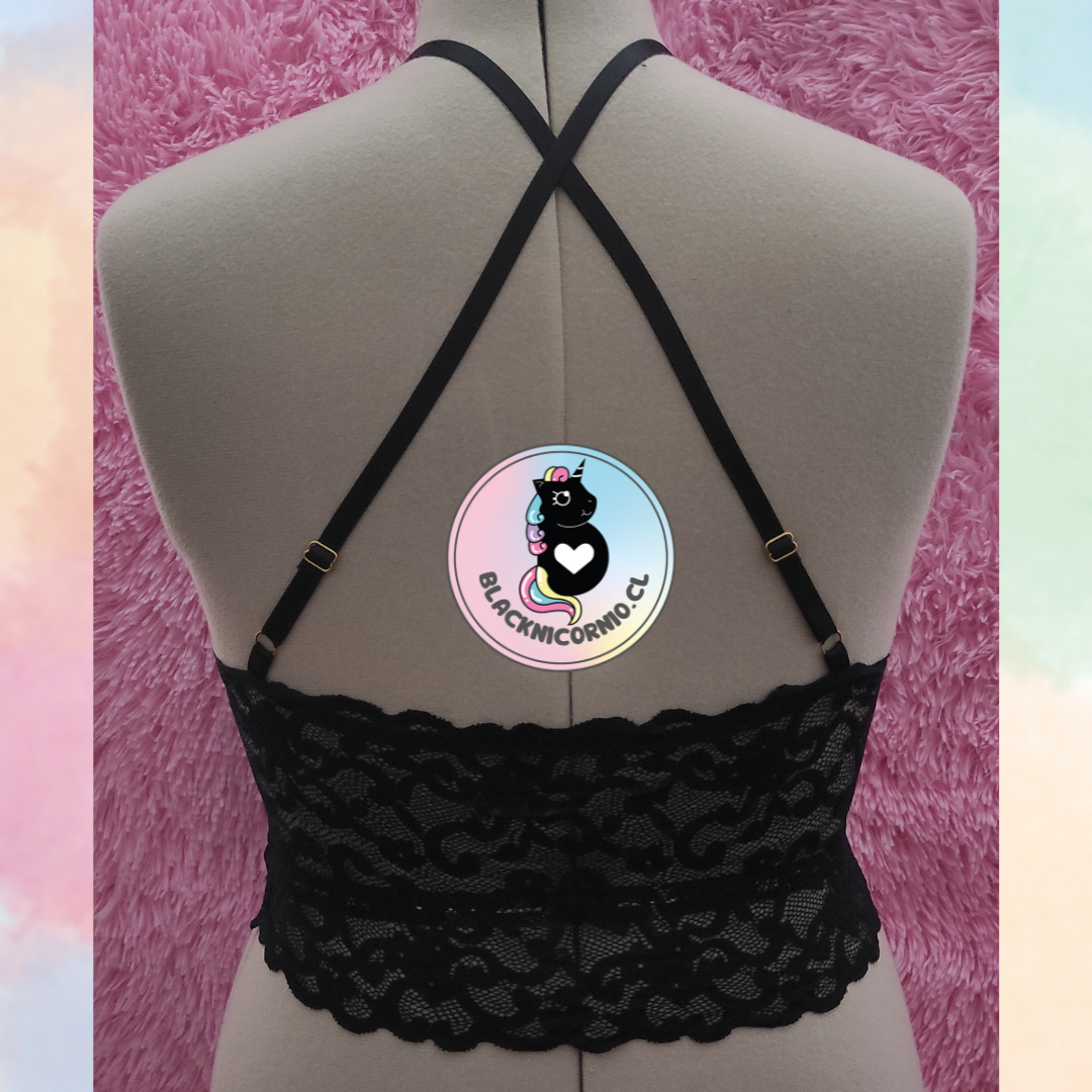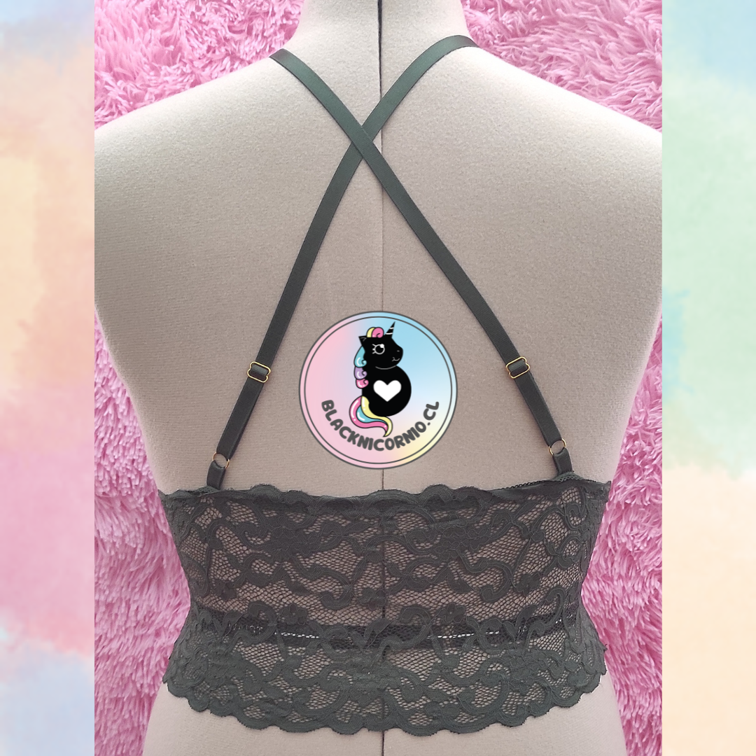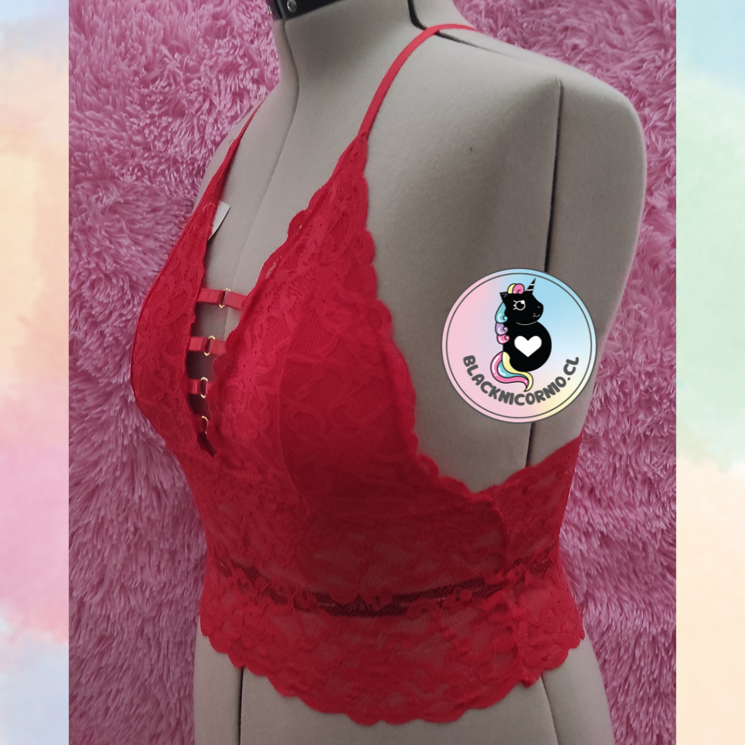 Bralette sexy con delantera de unión de tiritas y detalle circulo metálico.