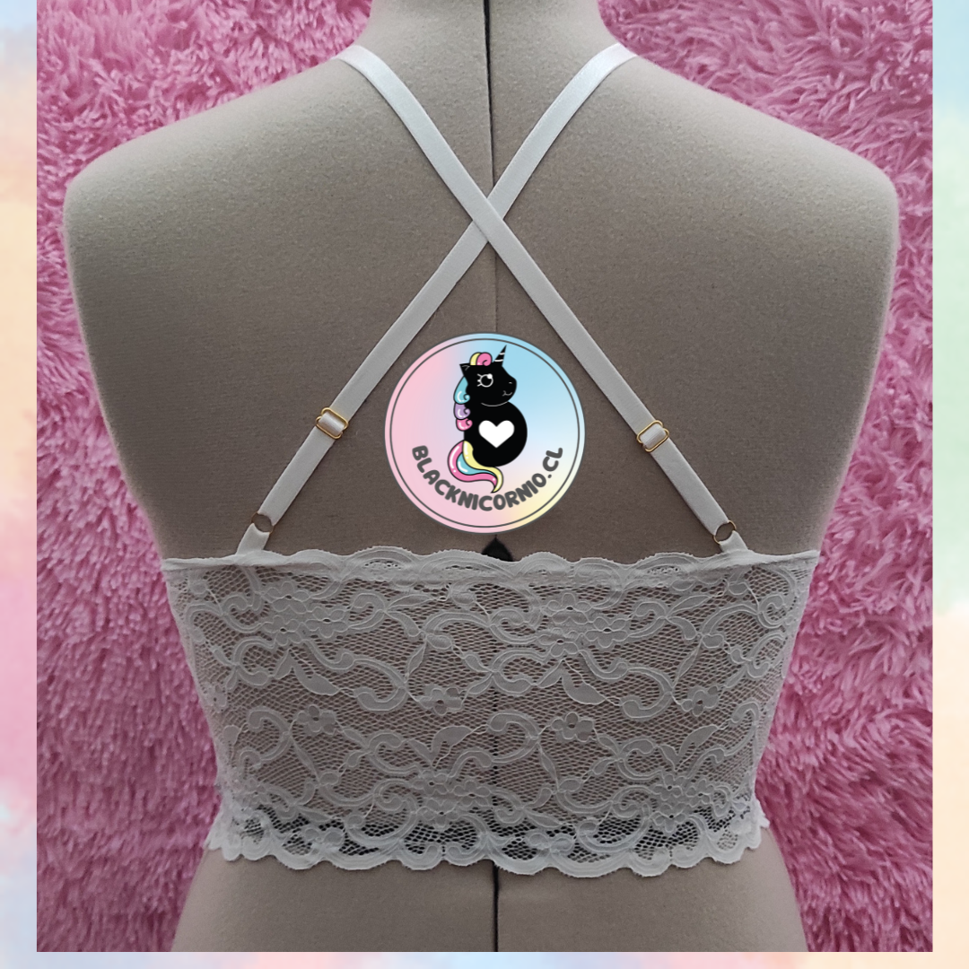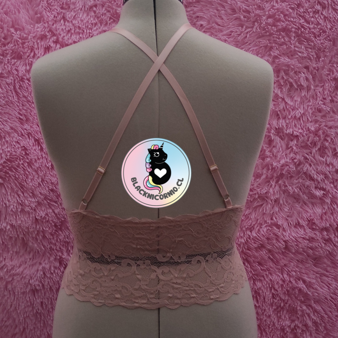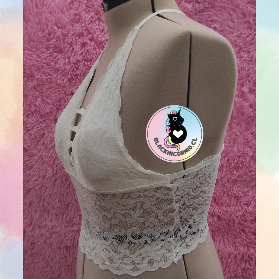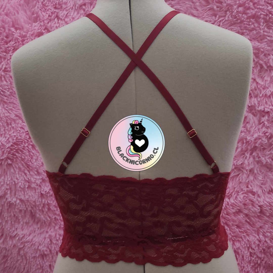 Bralette sexy con delantera de unión de tiritas y detalle circulo metálico.